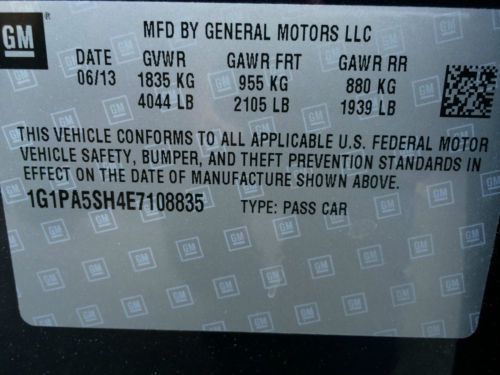 2013 chevrolet cruze lt damaged rebuilder runs! low miles fuel efficient l@@k!!(US $5,950.00)
