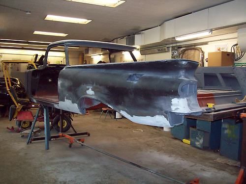 Down to frame and back up. Media blasted, floor changed, all suspension, steering, disc brakes on all 4, new door glass, all parts painted and waiting....