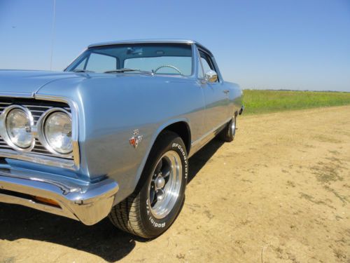 1965 Chevy El Camino in prime condition. S/S duo exhaust with 2.5 pipe size, all new bushing in front end. Nice straight driving car, custom wheels and tires, all new floor panels, rear bed with new metal. Restoration was completed approx. 4 years ago with less than 1000 miles on El Camino, always garage kept. No paper work available on work completed. Body is lazer straight, this El Camino is a great driver and gets 18 mpg. New chevy am/fm radio with speakers installed