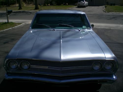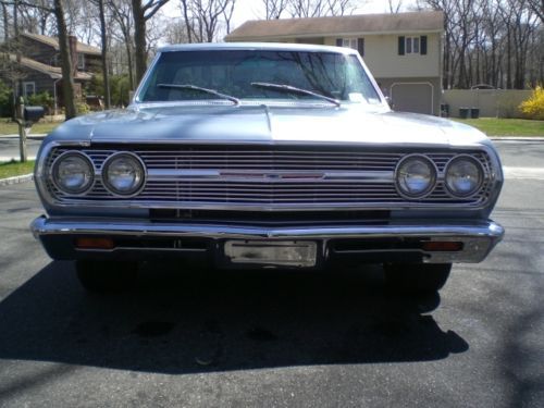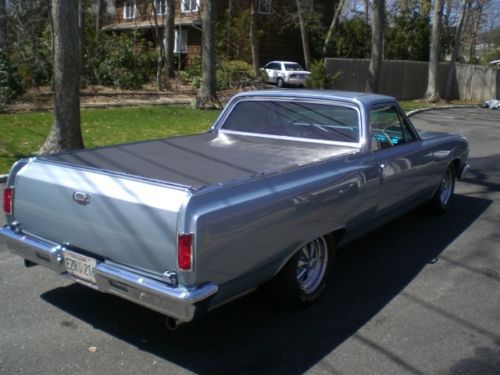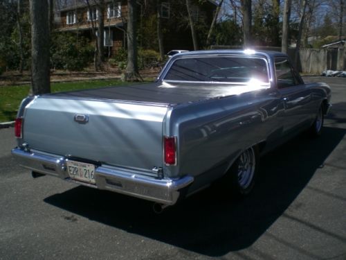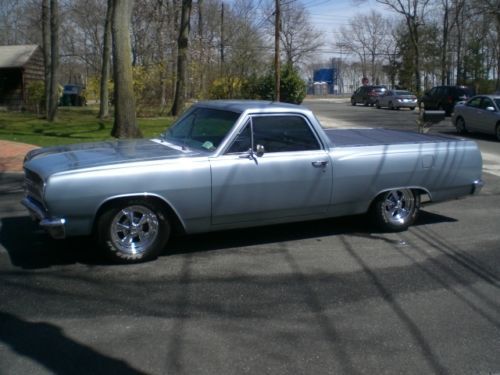 1965 Chevrolet El Camino Resto-Mod. beautiful restoration of an El Camino with only 7000 miles since completion. All the looks and styling of a classic car with all the modern upgrades for a great ride. EXTERIOR; Beautiful laser straight body lines, perfect bed and floors, no patch panels, started with a great rust free Midwest car. shaved drip rails and emblems for that smooth look, tinted glass, new chrome front and rear bumpers, and handles, all stainless polished, raised white letter tires mounted on chrome SS wheels, tonneau cover with full frame and piston lifts, no drilled holes in the bed or snaps, custom lined bed and tail gate MECHANICALS: 350 SBC with a 350 turbo automatic, custom aluminum intake, Holley carb, M/T valve covers and custom air cleaner, aluminum Radiator. 2" dropped front spindles, front disc brakes, stock drum rear, dual master power brakes, power steering, new dual exhaust with bell flower tips. INTERIOR: all new interior with custom bench seat, new door panels with custom handles, headliner and carpets with hush mat sound proofing. custom dash with Steward Warner gauges, Vintage air system specifically made for the chevelle/ElCamino, I-did-it aluminum steering column with tilt feature, rosewood steering wheel, B+M T handle shifter with lock out, JVC stereo with custom kick panel speakers and key fob remote, seat belts with factory style retractors |