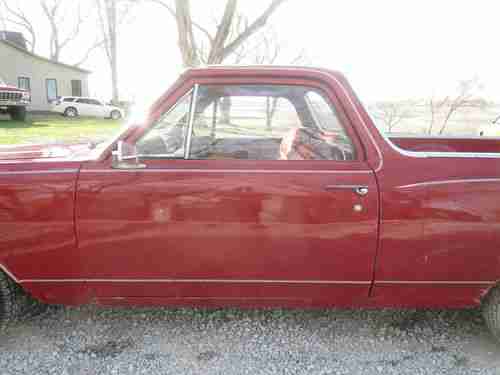 1965 El Camino 350 4 speed this car runs good, it is a non power steering , non power brake car this car was a factory 3 on the tree that has been converted to a 4 speed on the floor, the car runs good but could use a little attention on the brakes and exhaust, this car needs restored and has a minor amount of rust in the floor pans, there are no holes, and have been repaired at one time. they look good but are soft again, the frame is very solid with no rust, the rest of the car is pretty decent with the aception of the drivers side rear quarter it has a fair amount of damage and should be replaced, but could also be repaired the box is in good shape with no holes, or rust in the floor or cross supports, the car is actually a pretty solid old car, and could be a low budget restoration, please call 712 456 2158 thanks for looking