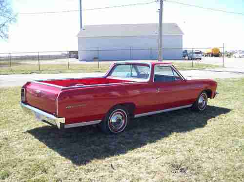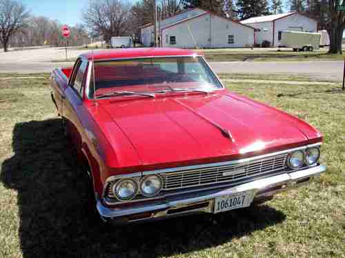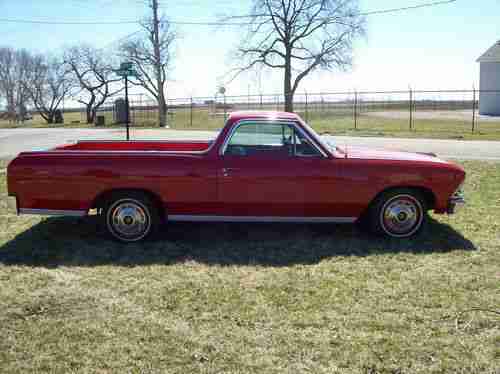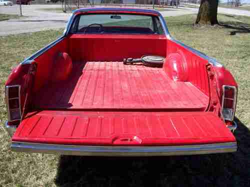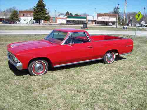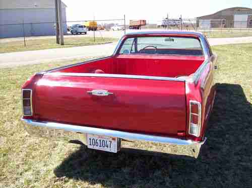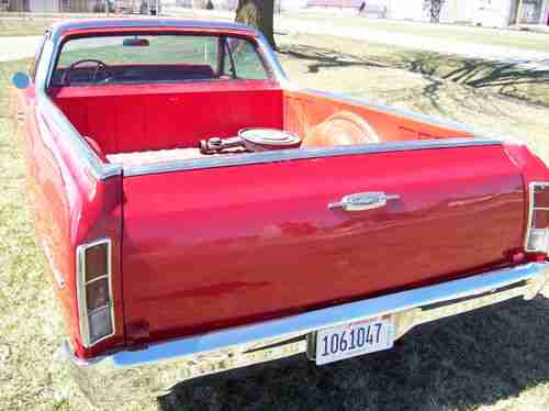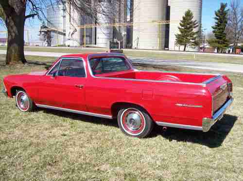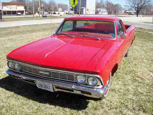 You're looking at a 1966 El Camino that came from California a few years ago. It was painted just before I got it. Although the paint job has no runs and is very shiny I would rate the paint job as driver quality, but not show quality. The transmission is thought to be the original 2 speed powerglide, which works well. The motor was completely rebuilt by Mike Lester, a man who's been rebuilding engines for over 40 years.The heads was completely gone thru as well as the complete block. It has new .040 over pistons, rings, bearings, seals, cam, etc. NO MILES since the rebuild. Being a California car there's hardly any rust. There is only one area of rust that I know of, which is behind the driver's seat next to the back of the cab = very small and an easy fix (see pic). I have parts of the chrome that goes around the back window, but I believe there may be a couple pieces missing. They are available thru Ebay. The interior needs completion. The A.C. is hooked up, but we did not charge it. The truck bed is lined with a rough coating to help protect the bed. In all for being 47 years old it's in amazing shape. Although it could be called a daily driver I could not, mainly because of the age of this truck. Compared to the work done there's very little left to make the truck a 30K+ show stopper. Of all of the years El Caminos were made this is my choice of the year made. I am not working on vehicles anymore because of my age and physical limitations. I don't plan on giving this vehicle away, but I do plan to sell this truck, so bid your best, and bid in confidence that I have not misled the condition in any way.This is a great representation of a 1966 El Camino and, hopefully will go to someone who will appreciate it for many years to come. Any questions please call Tom at 217-306-2821. The truck can be seen by appointment in Chestnut, Il. 62518. Thanks for looking!