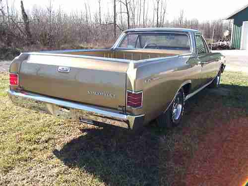 For Auction is a 1967 El Camino with a 396 engine. The engine is numbers matching for the car as is the 400 tranny and the 12 bolt rear end. The car has bucket seats, console, electric windows, tach, and speed warning indicator. The AM radio was repaired and an auxiliary port installed for your MP3 player. The engine and tranny was completely rebuilt , the frame was powdercoated, the front brakes were changed to power disc brakes, new headliner, paint, carpet, front windshield and tires. Car runs and drives fine. Front end alignment has not been done yet but still drives and stops straight. Ask any questions before bidding. No reserve auction and may consider partial trades of muscle cars or street rods. There will need to be a $2000.00 deposit on the car 24 hours after bidding end and balance will need to be payed before the car leaves. The car is for sale locally, so I reserve ther right to end auction early.