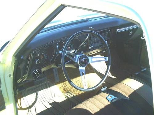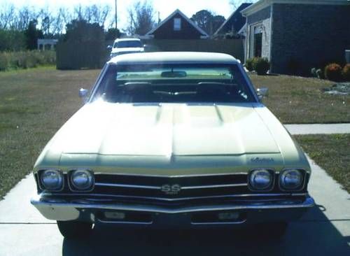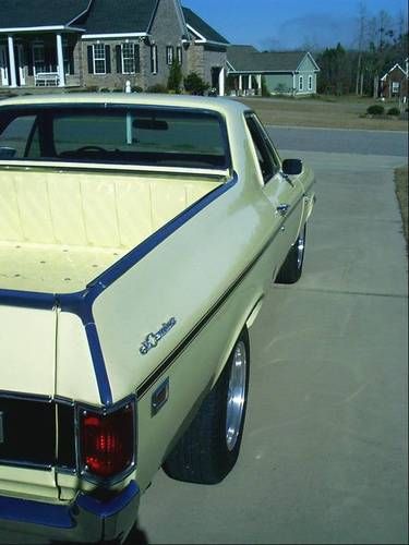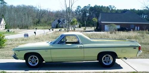 1969 Chevrolet El Camino, with Super Sport Trim and Emblems. This is a very nice tribute vehicle. Fresh 350-4 with a mild cam. Automatic transmission, working factory air conditioning, power steering, power brakes, AM radio, head rests, padded dash, seat belts, Eagle alloy wheels, full correct bent flow master exhaust system. Runs very well, rust free western car, no patch work or repairs in the body, floors, bed, mounts, gate area etc. This one is excellent. The paint is a few years old, done to show quality. The vinyl side stripes look new. If you are serious about a clean El Camino, you probably just found it. Email if you want additional photos. Please call David at 843-902-8909 between 8am-9pm EST