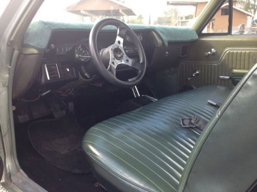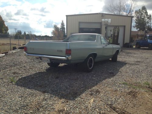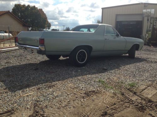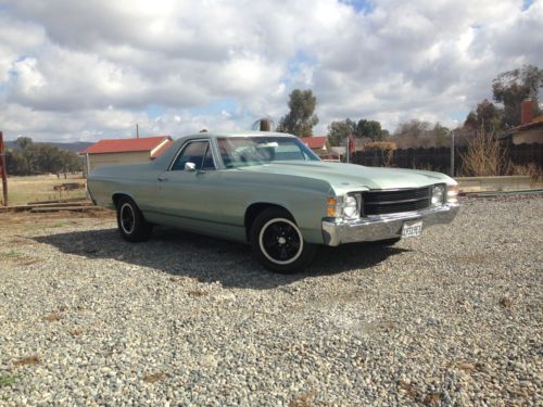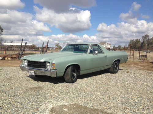 1971 El Camino 12 bolt rear end, 350 sbc with th350 3 speed transmission. Car runs and drives great, Clean title in hand and has been a ca car its whole life. 15" american racing wheels, super clean great driver or show. no leaks everything works. Gauges, tach, volt meter, oil pressure gauge everything. All the chrome and trim is in great shape. I have lots of money invested in the car, the only reason im selling is to fund other projects. Its a good solid running car and for the price your not going to find a cleaner car. Starts right up with dual with brand new dual exhaust with flowmaster mufflers. If you have any questions want more pics or videos of the car running please email me or call me.