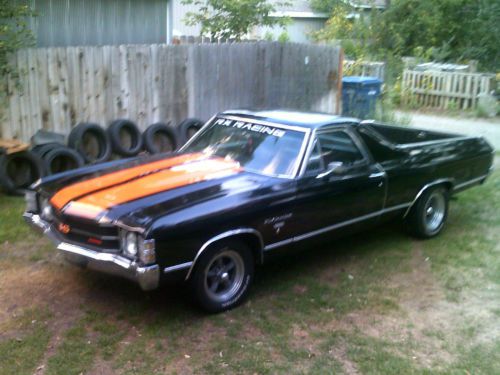 1971 EL CAMINO SS CLONE 400 block code 3951511 4 speed Muncie, 12 bolt posi, 3.73 triple black car, top was removed at some point, this is a clean muscle car, bought it this way, everything has been rebuilt or replaced on this car, clean detailed under carriage, no junk here, only the best parts were used, engine is fresh rebuild, runs on 91 holley double pumper, performance cam, noisey gear drive, never dynoded, but this car moves, well over 400 horse power 4 speed Muncie was rebuilt with a new clutch kit, hurst shifter 12 bolt posi with 373 gears this is a clean, well built muscle car, paint is a solid 20 footer, repaint it and you have a show stopper buy it now for((((( $13,900)))))) cash only sale, lots more invested into it I can store the car until you pick it up, for 1 month free no charge, car is in MT call or text 406-750-4955 |