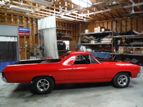 1971 EL CAMINO CALIFORNIA RUST FREE CAR GREAT DRIVER ENGINE IS A CHEVY 350 CASTING # 14010207 WITH 15K MILES ON REBUILD. EDELBROCK PERFORMER INTAKE AND 600 CFM CARB., POWER STEERING, CHROME RADIATOR COVER AND VALVE COVERS. NEW BATTERY, HEI IGNITION. TRANSMISSION IS A TURBO 350 AUTOMATIC, REBUILT AT THE SAME TIME AS ENGINE WAS . BODY IS CLEAN RUST FREE WITH ALL THE ORIGINAL PANELS, FRESH VIPER RED PAINT JOB LOOKS GREAT. SPRAY IN BED LINER. NEW FRONT CORNER LENSES AND SS GRILL EMBLEM. NEW FRONT WINDSHIELD. NEW REV WHEELS WITH MASTERCRAFT TIRES FRONT 235/60/15, REAR 275/60/15 UNDER CAR IS CLEAN AND RUST FREE, NEW SHOCKS, POWER DISC BRAKES. INTERIOR LOOKS BETTER IN PERSON THAN IN THE PICS, LOOKS GRAY, BUT IT'S NOT, LOTS OF NEW PARTS, NEW CARPET, DOOR PANELS, CD PLAYER WITH FM RADIO 4 SPEAKERS, SILL PLATES, DOOR SEALS AND STOPS, DASH PAD, HEADLINER, DOME LIGHT HOUSING, ARM REST PADS AND REAR VIEW MIRROR, PLUS LOTS MORE. FUN TO DRIVE CAR, STARTS RIGHT UP CAR IS LOCATED IN YUCCA VALLEY, CA, 92284, 30 MIN. NORTH OF PALM SPRINGS, CA CLEAR CALIFORNIA TITLE IN HAND I CAN GET YOU A SHIPPING QUOTE WORLDWIDE OR WORK WITH YOUR SHIPPING COMPANY. MUST BE PAID IN FULL BEFORE PICK UP CALL 760-977-6308