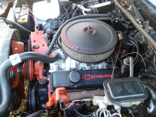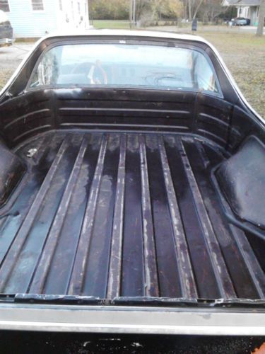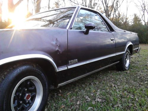 This El Camino is a 1985 conquista. It has a new stock crate 305 engine, put in about a month ago, with less than 1K miles. Lots of new under the hood. All new: 4 barrel edelrock carb, edebrock intake manifold, starter, fan clutch, waterpump, rear air ride shocks,distributor, plus more. The trans is 3 speed automatic 350 turbo. The interior has normal wear for its age, no cuts or tears. The left/drivers side fender and the tailgate is the only real body damage, besides a few small dings and scratches. Tailgate not original. Nice car, drives Excellent, shifts Great. The interior, body and paint waiting on you. Make it yours, bid to win.