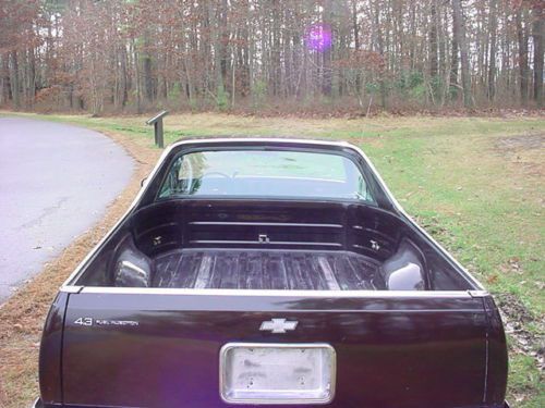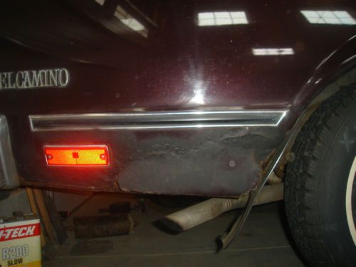 1985 ELCAMINO RUNS GREAT . INTERIOR IN GREAT SHAPE , DASH IS PERFECT, GOOD TIRES. FRAME IN REAR ROTTED ALSO REAR QUARTERS ROTTED . DOORS AND NOSE RUST FREE. DOES RUN AND DRIVE I HAVE TITLE FROM THE GUY I GOT IT FROM. TOO MANY PROJECTS MUST SELL. I ALSO HAVE A 1987 ELCAMINO LISTED IN A OTHER AUCTION RUST FREE CLEAR TITLE. SEE AD |
