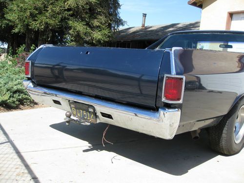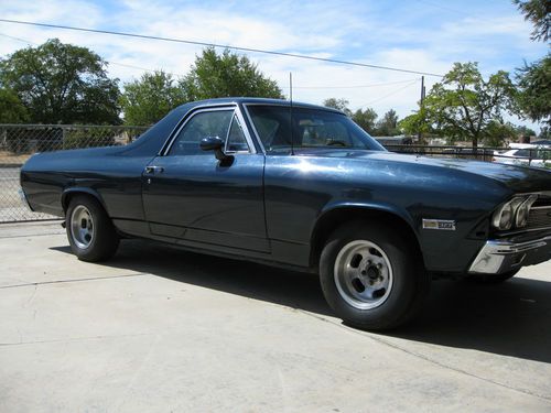 Hi, up for sale is my 68 El Camino project car. This car has a 327 large journal engine, factory four speed transmission, and a 12 bolt posi rear end. The engine has been rebuilt. It has forged pistons, has been balanced, and has a mild cam. It has camel hump heads, GM hei distributor, and a holly 650 double pumper. The transmission is a factory four speed with a saginaw transmission. The rear end is a 12 bolt with positive traction