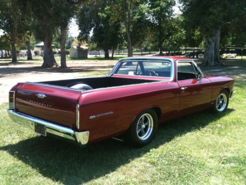 1966 CHEVROLET EL CAMINO. JUST IN FOR IS THIS BEAUTIFUL 1966 EL CAMINO. WE BOUGHT AND SOLD THIS CAR LAST YEAR AND HAD THE OPPORTUNITY TO BUY IT BACK AGAIN AND AS YOU MAY OR MAY NOT KNOW WE LOVE BUYING BACK CARS WE ALREADY ONCE OWNED.WE KNOW THE CAR AND KNOW IT IS SWEET !! THIS CAR ORIGINALLY CAME FROM CALIFORNIA WHERE IT WAS FRAME OFF RESTORED. IT IS AN OLDER RESTORATION BUT IT STILL LOOKS FRESH AND NEW !! THE BODY IS EXTREMELY STRAIGHT AND SOLID AND THE FLOORS AND FRAME ARE PAINTED AND CLEAN. THE CORTEZ SILVER PAINT IS SHOW QUALITY, IT HAS A DEEP LUSTER AND SHINE. MOST OF THE CHROME AND TRIM ARE NEW OR LOOKS NEW AS WELL AS THE WEATHERSTRIPPING TOO. THE BENCH SEAT INTERIOR IS ALSO IN NEW CONDITION INCLUDING THE DOOR PANELS,SEATS,HEADLINER AND CARPET EVEN THE DASH CLUSTER AND DASH PAD LOOK NEW !! THE ENGINE IS A STRONG RUNNING AND SOUNDING 350 C.I. SMALL BLOCK THAT WAS REBUILT DURING IT'S EXTENSIVE RESTORATION,IT IS BACKED BY A TH-350 AUTOMATIC TRANSMISSION AND 10 BOLT REAR WITH CRUISING GEARS.OTHER FEATURES INCLUDE, POWER STEERING, POWER FRONT DISC BRAKES, COLD VINTAGE AIR CONDITIONING,TILT STEERING WHEEL, AM-FM STEREO 15"RALLY WHEELS WITH B.F.G. T/A RADIAL TIRES AND SO MUCH MORE. THIS IS A PROVEN DRIVER AND SHOW WINNER !! DON'T MISS IT !!