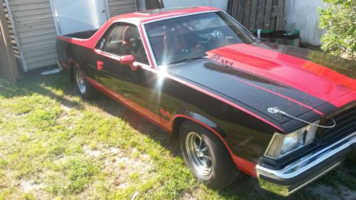 1979 El Camino 350 ci 4 barrel Holly 350 turbo transmission B&M Shift Kit and shifter, New exhaust, Sunroof. Special Paint working cowl induction hood new brakes and tires goes straight looks Great Sounds Great! Thumbs up all day long! Air conditioner has been upgraded to R134 and works great! Nice stereo Custom interior. The Bed is perfect..Being a Florida car..No Rust. Not show but beautiful for the Day/night cruises. Make an Offer!