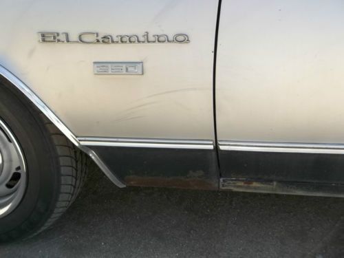 Nice original 72 el camino, needs full restoration, however, is currently my daily driver. Front end is tight, tires are good, engine is quiet, doesn't smoke or make noises, trans leaks a little, but, shifts nice and firm. Tilt wheel has been rebuilt, bench seat has been nicely redone. This is my shop truck, it runs all the errands I ask it to do. Good canidate for a restoration, floors are solid, so are under the windshield, and, backglass area that always rust...this one is nice...bed is original paint, has no rust through. Vinyl top is gone, the rust there is surface rust only.
