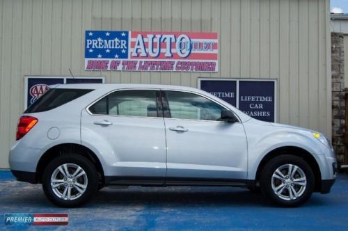 Contact Premier Auto Outlet today for information on dozens of vehicles like this 2012 Chevrolet Equinox LS. This Chevrolet Equinox LS is an incredibly versatile vehicle that is a must have for any family. Comfort. Performance. Safety. Enjoy all three with this well-appointed AWD 2012 Chevrolet. This Chevrolet includes: LICENSE PLATE BRACKET, FRONT TRANSMISSION, 6-SPEED AUTOMATIC WITH OVERDRIVE (STD) A/T 6-Speed A/T LS PREFERRED EQUIPMENT GROUP JET BLACK, CLOTH SEAT TRIM Cloth Seats TIRES, P225/65R17 ALL-SEASON, BLACKWALL (STD) Tires - Front All-Season Tires - Rear All-Season AUDIO SYSTEM, AM/FM/SIRIUSXM STEREO WITH CD PLAYER AND MP3/WMA PLAYBACK CAPABILITY AM/FM Stereo MP3 Player CD Player Satellite Radio Auxiliary Audio Input EMISSIONS, FEDERAL REQUIREMENTS SEATS, DELUXE FRONT BUCKET (STD) Bucket Seats ENGINE, 2.4L DOHC 4-CYLINDER SIDI (SPARK IGNITION DIRECT INJECTION) 4 Cylinder Engine Flex Fuel Capability SILVER ICE METALLIC STANDARD PAINT E85 FLEXFUEL CAPABILITY Flex Fuel Capability *Note - For third party subscriptions or services, please contact the dealer for more information.* More information about the 2012 Chevrolet Equinox: Starting at under $23,000, the 2012 Chevy Equinox is one of the most affordable crossover vehicles in its class, rivaling Honda's CR-V and the Toyota RAV4. The interior features a dual-cockpit design, ice-blue ambient lighting and sophisticated, classy appearance touches that makes it look much more expensive than it is. Interesting features of this model are Powerful and efficient engine selection and sharp styling inside and out Contact us at 877-304-9841. Premier Auto Outlet has set itself apart by putting integrity at the core of the selling process. At Premier Auto Outlet, we are committed to servicing our Lifetime Customer. We believe when we sell you a vehicle, it's the beginning of a lifelong experience.