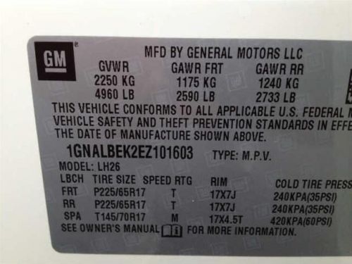 VIN (Vehicle Identification Number): 1GNALBEK2EZ101603