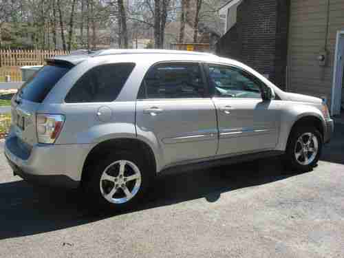 UP FOR AUCTION IS MY WIFES VERY GOOD CONDITION, EQUINOX. THE RESERVE IS BELOW TRADE IN VALUE! CHECK KBB AND NADA. IT IS LOADED. IT HAS EVERY OPTION AVALABLE AT THE TIME. AWD, POWER DRIVER SEAT, BOTH SEATS ARE HEATED, AUTO START, NAVAGATION, CHROME RIMS, POWER MOON ROOF, CD, ON STAR, BLUE TOOTH, LEATHER, POWER WINDOWS, LUGGAGE RACK, POWER LOCKS, SYSTEM CHECK, OUTSIDE TEMP, POWER MIRRORS, RUNNING BOARDS, TOW PACKAGE, TIRE AIR SENSOR, ON STAR, SATALITE RADIO, TOO MUCH TO LIST!! THE CAR RUNS GREAT. JUST DID THE 100,000 MILE SERVICE AND ALL THE BRAKES. 2 KEY FOBS AND ALL THE MATS ARE IN THE CAR, AS WELL AS THE CARGO NET. THE CAR HAS A SPOT ON THE FRONT BUMPER THAT HAS NO DAMAGE, JUST PAINT MISSING. THE RT FRONT FENDER FLARE HAS A SKUFF THAT CAN BE EASILY FIXED, AND ON THE REAR BUMPER THERE IS A SCUFF. CHECK THE PICTURES TO SEE THESE. ASK ME FOR ANY ADDITIONAL PICTURES OR INFO. CHECK MY ALL + 614 FEEDBACK. I AM AN HONEST PERSON SELLING A GREAT CAR AT A VERY FAIR PRICE. IF YOU WOULD LIKE TO TEST DRIVE OR SEE THE CAR, CONTACT ME AND WE WILL ARRANGE IT. THERE IS A LOAN ON THE CAR, SO WE MUST SETTLE THE BANK LOAN TO GET THE TITLE.