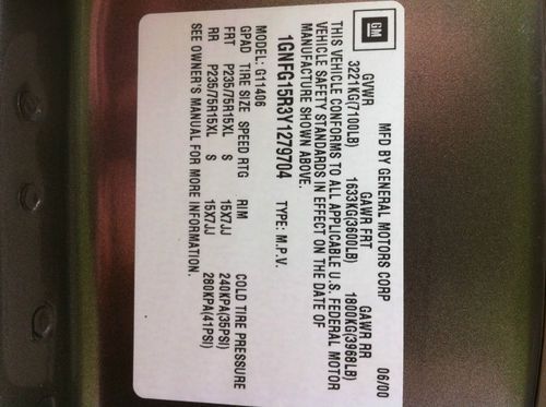 2000 chevrolet express cargo van heatedextmirrors reartelevision(US $4,400.00)