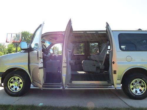 2003 CHEVROLET EXPRESS QUALITY COACHES, INC. CONVERSION VAN VAN. RARE DUAL SIDE ENTRY DOORS, LEGENDARY 5.3L VORTEC V8, TV/DVD, REAR SOFA/BED, FULL INTERIOR LIGHTING, ETC. THIS VAN IS READY TO TRAVEL. THIS IS A ONE OWNER, METICULOUSLY MAINTAINED VAN THAT RUNS AND DRIVES LIKE IT HAS 40K MILES, PERFECTION! ALL ORIGINAL PAINT ACCIDENT FREE CLEAR CARFAX. THE INTERIOR IS IN UNBELIEVABLE CONDITION. THE REAR SEATS AND SOFA/BED LOOK LIKE THEY WERE NEVER SAT IN. NON SMOKER, NO PETS AND NO KIDS IN THIS ONE. IT WAS SENIOR OWNED SINCE NEW WITH PRIMARILY ALL HIGHWAY MILES. POWER WINDOWS, POWER LOCKS, TILT, CRUISE CONTROL, FRONT AND REAR AIR CONDITIONING, TV/DVD, REAR CAPTAIN CHAIRS AND SOFA BED, INTERIOR LIGHTING, ROOF TOP LUGGAGE RACK, FACTORY TINTED WINDOWS, ALUMINUM WHEELS, ETC. LOOK AT THE PICTURES AS THEY TELL THE STORY HERE. THIS IS ONE WELL MAINTAINED AND CARED FOR CONVERSION VAN. IT RUNS AND DRIVES 100% WITH ZERO MECHANICAL ISSUES. REGULAR MAINTENANCE AND OIL CHANGES. THE AIR BLOWS ICE COLD. THE TIRES ARE LIKE NEW MICHELINS. THE TRANSMISSION SHIFTS PERFECT. NO LEAKS OF ANY KIND. YOU WILL BE PROUD TO OWN THIS VAN. THIS TRUCK COMES WITH TWO ORIGINAL KEYS AND BOTH ORIGINAL REMOTES. THE VAN HAS TYPICAL COSMETIC IMPERFECTIONS AS YOU WOULD EXPECT FOR AGE/MILES AND USE. CHECK MY 100% FEEDBACK AS IT SPEAKS FOR ITSELF. CALL KEN AT 586-365-8902 IF YOU HAVE ANY QUESTIONS. Listed by a licensed MI dealer. $99 doc fee on all sales. Michigan residents pay 6% sales tax and applicable title/plate fees. $300 immediate deposit due via paypal and balance is due in 5 days. Balance can be paid by cash in person at delivery, bank to bank wire or cashiers/certified check. If payment is made with cashiers/certified check, we will hold the title until the funds clear. Fly into DTW (Detroit Metropolitan Wayne County Airport), we will pick you up and provide you with a temporary tag to drive home on. Thank you.