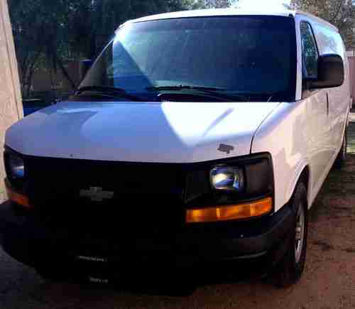 Chevy Express Van, Runs Great. Needs Emmissions. Clear Title. Bins Installed. Some Interior Seat Damage on Driver Side. Small dents on front fender and back, see pictures. Anti-Lock Brakes. Driver and Passanger Air Bag. A/C. Automatic Transmission. Sirius Radio upgrade with Speakers, bluetooth and usb.