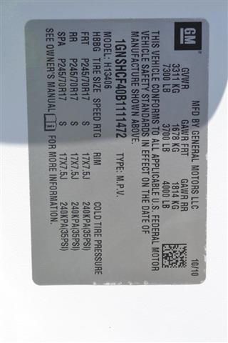 VIN (Vehicle Identification Number): 1GNSHCF40B1111472