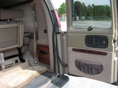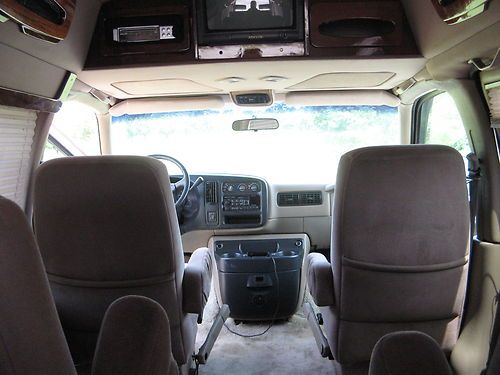 1997 Chevy G1500 Express Mark III (3) LE Conversion Van (seven passenger). I had just purchased the van a few months ago, but two days after purchasing, I was layed off from my job . I must now unfortunatly sell it for financial reasons. It is in very nice condition! 171,968 well cared for miles w/maintenance receipts from the last three years. The van has always started instantly, idles smoothly, shifts and runs perfectly - NO ISSUES. 5.7 V-8 with four speed automatic transmission (w/overdrive). Very smooth and plush handling; quiet and comfortable. This is a beautiful Mark III LE conversion with lots of wood work and cool upper side + top center ceiling lighting accents in wood trim. Cruise control, electric widows & locks. Lighted vanity mirrors in both visors. Foot well entry lights.The van has never been smoked in. The seats are in excellent condition with no stains or tears. The pictures do not show them, but front and rear floor mats are included. The van has just had the seats and carpeting professionally cleaned. It does have the typical scratches and a couple very mild dents here on the body that you would expect it to have after time, but still looks very nice inside and out. The "pop-top" has areas where the clear coat has flaked off, but many I have seen from about 2005 and older year models have the same issue. There is two small dents in the rear bumper and one small one in the front bumper. You can also see a couple mild dents in the rear left door at the far left lower area. The van has never had a hitch on it (never towed anything). The rear seat has an electric switch which allows it to lay flat for a bed (up/down switch). ICE COLD front and rear A/C with three speed blower fan on the rear unit. Also rear heat (w/three speed blower). New tires, air filter and oil / filter change. Anti-freeze flush/replacement. Plugs and plug wires were replaced last year. Also new front end parts including idler arms and ball joints. Nearly every serviceable item plus an upgrade to current high-output air conditioning components has been performed in the last couple years by the previous owner. Everything works except the power antenna - I had a bird fly up into it breaking the upper half off. Factory owners manual is in the center storage console. Included is a front license plate mounting bracket/frame. Two sets of keys/remotes included. It is ready to hit either coast or anywhere you choose. The van is also advertised locally, so the auction may be shut down early if sold outside eBay. If you live far away, fly into XNA (NW Arkansas/Fayetteville); I'll pick you up and you can drive it home! Thanks for looking!