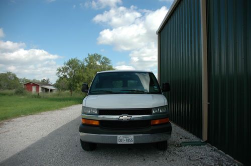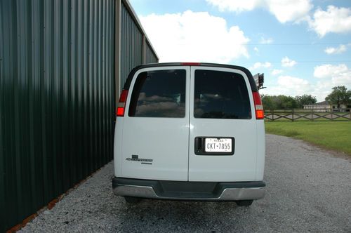 2007 Chevrolet van, white, in excellent conditions. The body and paint are fully intact with only 2 very minor dents on the right rear door. The dents are so minor they are harldy visible and, therefore, extremely difficult to catch on camera but I did include picture of these dents. The windshield has 3 cracks on the right side so it does not obstruct driver's view nor does it leak. There is a small area where paint has chipped at the top of the driver's side door and some superficial rust to the top hinge of the passenger side rear door. The interior is fully in tact. Absolutely no tears in any of the seats. A/C functions great. This van was given regular tune ups as it was used for business. Van has current state inspection and tags.