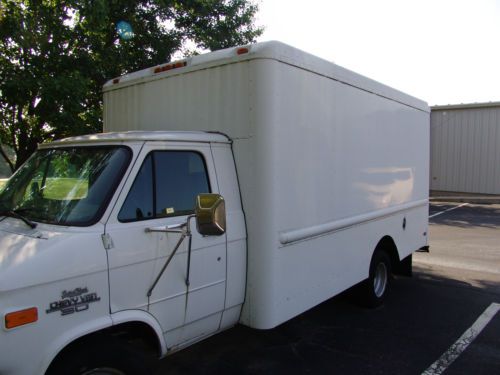 One owner 1995 Chevy G30 box van. Unit has aluminum body with Todco overhead door, door need work, but does open. Body in good shape. Tires have good tread (see photos) 350 V8 engine needs work (head gasket)has new radiator, everything else in good shape. 109,493 original miles! Vehicle is sold as is (no warranty) and must be picked up, no shipping. Would make a good work vehicle or service van.