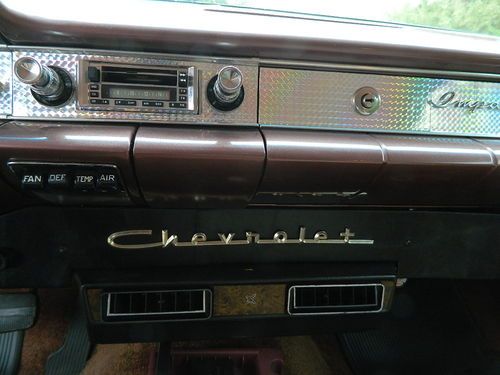 Looking for luxury? This car will take you back in time. It has been fully restored. The paint is the orignal option.Polished chrome that really stands out. The seats are a crisp pink and mauve color. This was the first Chevrolet Impaula body style. This car is ready for the road with it's smooth shifting automatic overdrive transmission. The effortless power steering, the stop on a dime power disc brakes and the factory add-on A/C and tinted windows that will cool the whole car. The Glass and westherstripping has all been replaced. New radial wide white wall tires. Make it yours today!