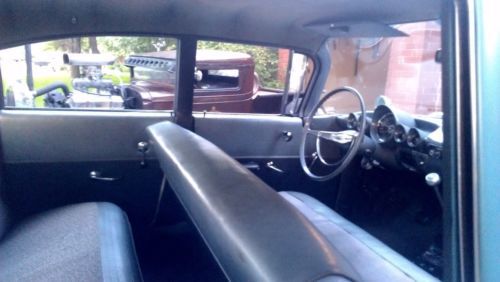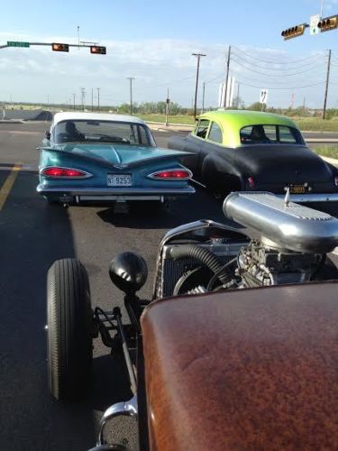 My 59 chevy is my absolute everyday car. Its a reliable fun car to drive everyday. living in Texas the temp easily gets in the 100's all the time. This car doesnt over heat and runs great all the time. This is the Biscayne model of the 59. It came with vinyl floors and manuel windows. This was an upgraded model that originally had the 235L6 with 3 on the tree and the rare Overdrive. I drove it this way for a while, then one buddy drives it and poof.... Motor was cooked. So now it has a SBC 350 V8 and a 700R4 as its powerhouse. This is a perfect set up for daily highway use. I live on a toll road and cruise 80mph to and from work every day. Shifter was moved to the floor with a nice B&M shifter. I wanted this car so my family and I could all ride together. So i had brackets for my kids car seats installed in the rear bench, so they can just click into place. All floors are solid and rear bench has minor tear from age. front seat is fine. EVERYTHING IS ORIGINAL inside. Because its a daily i had to have my tunes. I installed a Pioneer CD player with Bluetooth and ipod controls in the glovebox with speakers hidden under the dash and under the rear deck. Original radio still works but speaker is disconnected. I installed an IR repeater under the dash (hidden as well) so the glovebox doesnt have to be open to control the radio.