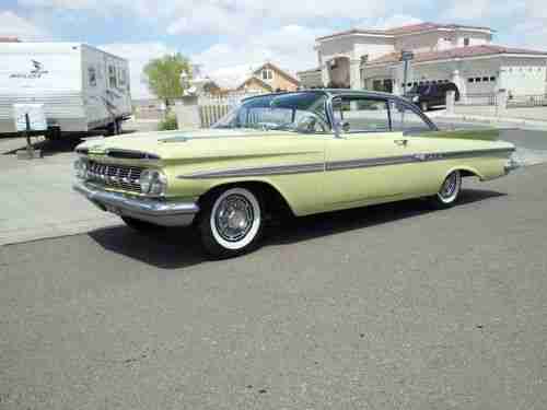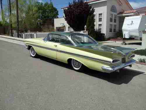 For sale is a 1959 "cat eyes" Impala hard top this car is a truly beautiful car with new paint, interior, motor, trans, brakes, suspension,white wall tires, ect..... this car runs excellent and gets a lot of looks, here is your chance to own her .This car is for sale locally so I do reserve the right to end the auction early if you have any questions you can give me a call at 5058180147 thank you and have a great day