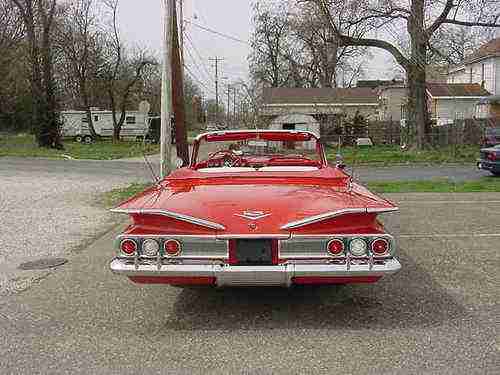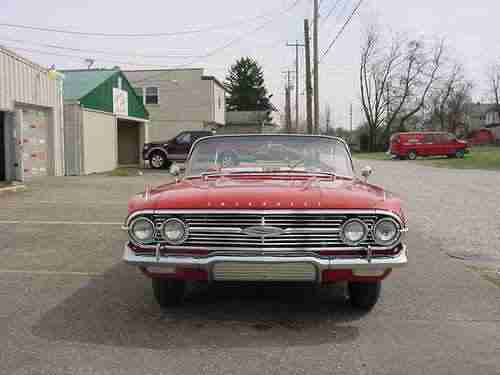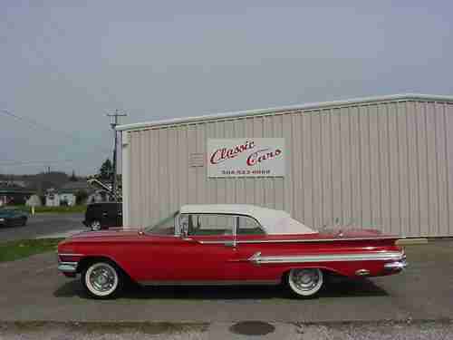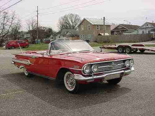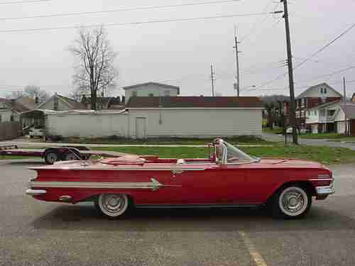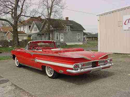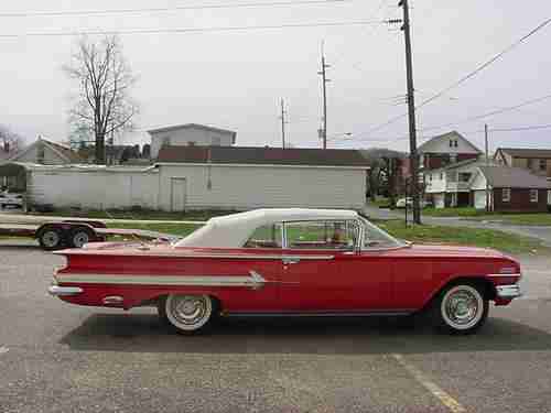 1960 CHEV IMPALA CONVERTIBLE FACTORY AIR CONDITIONING LOADED--NUT AND BOLT FRAME OFF RESTORATION--RED EXTERIOR--RED/WHITE INTERIOR--WHITE CONVERTIBLE TOP--V-8 ENGINE--AUTOMATIC TRANSMISSION--POWER STEERING--POWER BRAKES--FACTORY AIR CONDITIONING--POWER WINDOWS--POWER SEAT--ANY QUESTIONS CHUCK 304-633-7768------------------MAY TRADE-------------------------