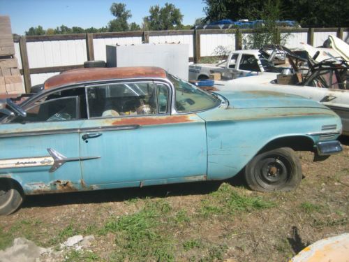 1960 Chevrolet Impala 2dr Hardtop. It is a 348, auto car but it does not have a motor or transmission in it now. It has a nice body but does have minor rust typical of this age. Would make a good restoration car. This vehicle has a Bill of Sale only. Delivery or shipping is the responsibility of the buyer.