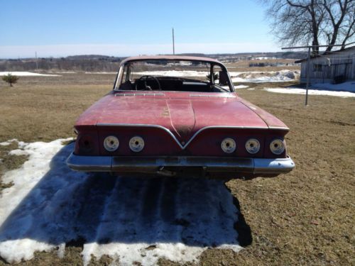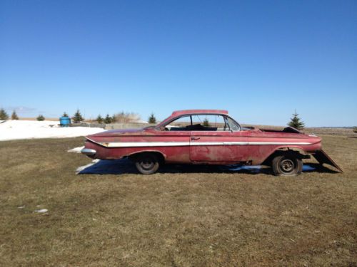 You car looking at a 61 Impala that's been in my family for years. I started to tear it apart and restore it when I was in High School. It has been sitting in my parents barn for the last 15 years. You can kind of see the condition of it from the pictures, it needs work but its a desirable car if finished. My uncle had it registered in the 70's but can not find the title.