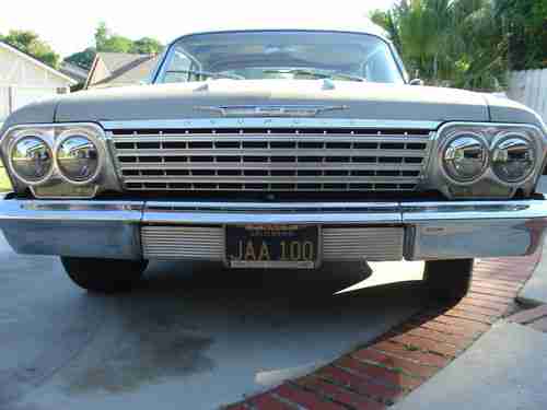 For sale i got an ALL original 1962 Chevy Impala SS Super Sport with what the original owner told me 27k ORIGINAL MILES that i purchased from the original owner here locally in Los Angeles. This car is like a time capsule, black CA plates,All original paint yes that is the factory applied paint on the car, All original interior that is in great shape for its age driver seat has tears in it, 27K original miles, 327 engine, power brakes, power steering. Car drives like a brand new car, engine fires right up idles BEAUTIFULLY with absolutely no hesitation and super quiet and the powerglide transmission shifts perfectly ive taken the car up to 80mph on the highway and runs great. Car still sports its original factory paint that is very nice but is 50 years old now so its not 100% perfect but very presentable has a couple spots on the hood and a little dent on the trunk lid where the owner back up into something but can be fixed easily, I thought it gave the car character and didnt want to mess with it in anyway it has that 50 year old patina. Everything on this car works all the interior lights, turn signals, dash guages, headlights, everything, new brakes, new tires even the original radio still works. has the original owners manual and the original dealer contract. You just dont find them like this anymore undercarriage is super clean and rust free. Original CA car been here its entire life. Car is being sold As-Is with no warranty and is the buyers responsibilty to check car prior to bidding. Car is Located in Los Angeles and has a clean CA title. I have sold a couple cars to overseas buyers and out of state buyers in the past and can offer to deliver the car to any of the shipping companys here in southern california. Most of my cars end up selling before the auctions even end so i have the right to end the auction early if the car sells locally. IF YOU HAVE ANY QUESTIONS YOU CAN CALL ME ON MY CELL AT 714-401-3854 thanks