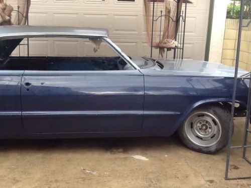 I am selling a 1963 Chevrolet Impala freshly painted with a two tone blue. Paint job cost $3000.00 alone The car looks very nice. The car is gutted out no engine, transmission, interior, windshields comes with moldings and taillights box of moldings. I no longer want this car and want it gone ASAP. I will end auction if a reasonable offer is made. Call me 323-396-1142 Gil
