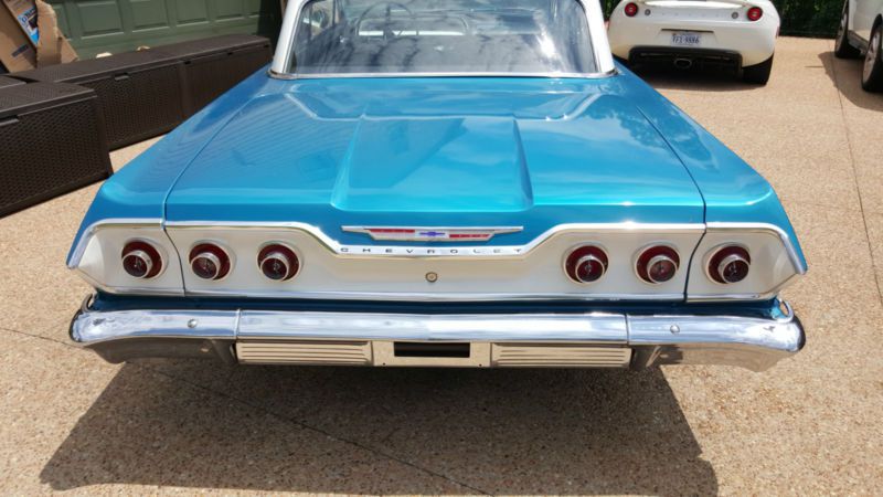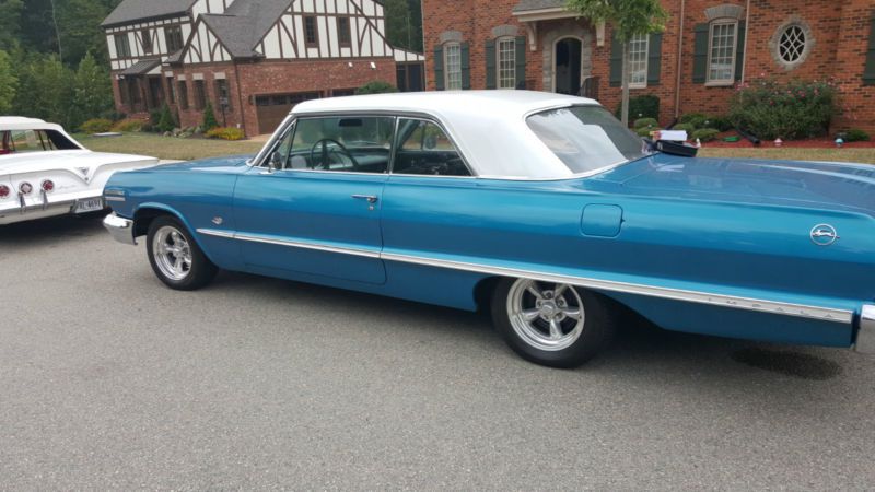 Blue & white 1963 Impala 2-door coupe body type with black sued & leather interior. The dash is blue &white, radio works, starts immediately, clean engine, new rims, no leaks, drives like it's new, it is not a race car, but this Impala will leave most traffic in the rear view!