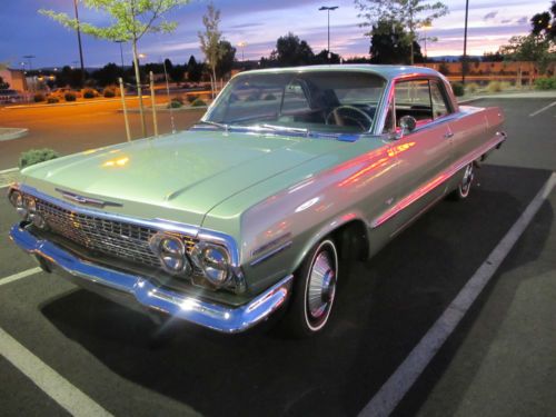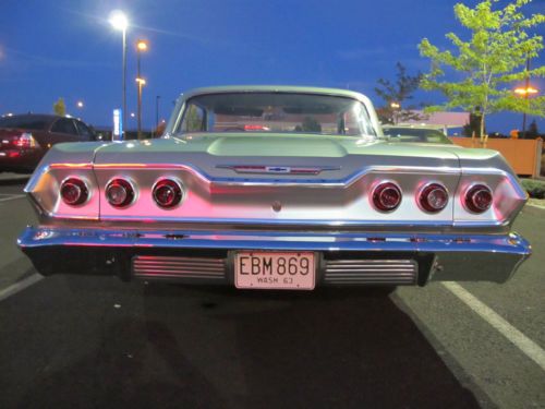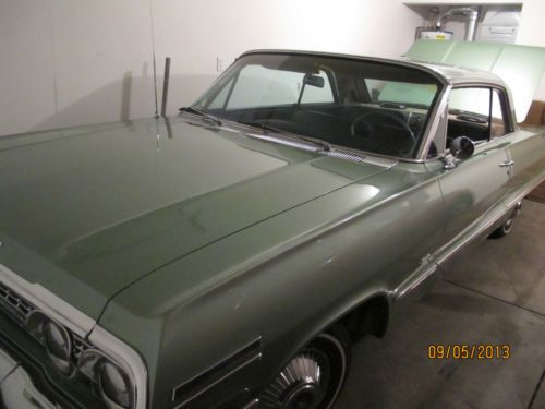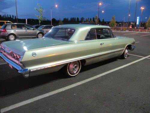 You are bidding on a 1963 Impala 2 door. This vehicle was repainted in 2008 in laurel green and still looks very nice. The Interior is black and could use a little tlc. I recently had the headliner, visors, package tray, door panels and arm rests re upholstered. The engine is a 327 v-8 (not numbers matching) with a 4 barrel edelbrock carb and a billet aluminum dress up kit with aluminum aftermarket radiator. The vehicle has a power glide transmission and power steering. Back in 2008, I purchased new moldings, had the back bumper re chromed and I purchased a brand new front bumper. The odometer is reading 41,724 but i cannot verify if that is actual or not. All the lights, gauges and signals seem to work fine. The vehicle is registered as a collector vehicle in Washington state. Washington state does not require you to renew your registration every year on collector cars. Since the vehicle is being advertized locally, I reserve the right to end this auction at anytime, also I am willing to ship this vehicle at the buyers expense or the buyer can simply pick the car up. Thanks for looking. If you have any questions give me a call 509-531-8696
