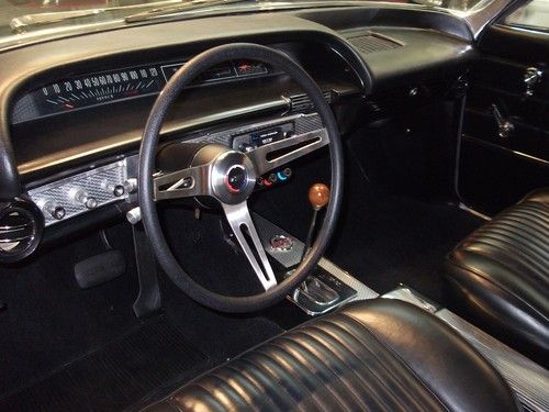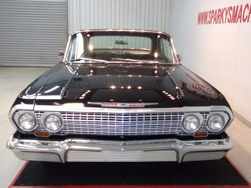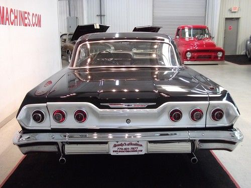 This is an actual 1963 Impala SS that came from the factory with the black bucket seat interior and SS console. This is a great running and driving car with a rebuilt 350 V-8 engine, power steering, power brakes, air conditioning, and automatic transmission. The restoration is a few years old but looks really well with a black exterior base/clear finish over a rust free body that is exceptionally straight. The glass is in good shape and most of the bright work is original to the car and in good shape except for new bumpers. The black interior has been redone from top to bottom including the seats, headliner, dash, door panels and carpet. A custom am/fm/cassette stereo has been added. The trunk area is dressed out properly with new floor mats. The undercarriage pictures show how solid this one really is. What a great driving true SS!