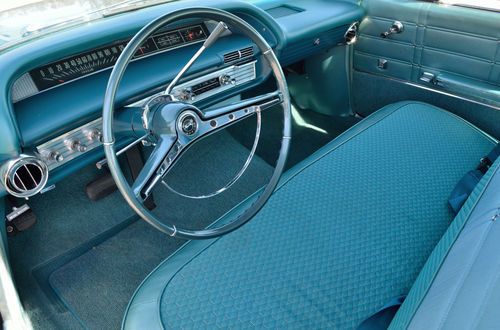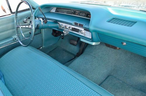 At 340 HP and 420 lb-ft of torque, this 1963 Chevrolet Impala station wagon was one of the most deceptively quick grocery getters of its generation. Today it is also one of the most highly optioned 409 CI V-8 powered wagons known to exist. Stored indoors for a quarter century, it combines Chevrolet’s fabled “W”-head big block engine – complete with 4-barrel carburetor and dual exhaust – with a sturdy Powerglide 2-speed automatic transmission and a Positraction rear axle for solid, reliable performance around town and on the open road. Finished in Marine Aqua with a White roof and sporting the spacious, crisply styled interior that helped make the early Sixties Impalas so popular with the motoring public, this is one very classy automobile that further benefits visually with the inclusion of full size spinner wheel covers, Whitewall tires, front grille guard and Blue tinted glass all around. Oh yes – and those “409” crossed-flag front fender badges, too. The Impala was available with a long list of optional equipment that has been taken full advantage of in this example. Mechanical extras include power steering, power brakes and factory air conditioning, while the interior is accessorized with a padded dash, power windows and seats, a power tailgate and push-button radio. That is a lot of car, but it typifies the abundance of style and functionality embodied in the 1963 Impala, and with a believed-accurate 39,500 miles on the odometer, it still has many years of enjoyment to offer its next proud owner.
