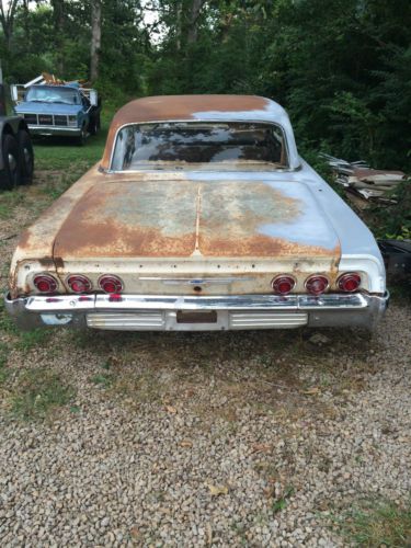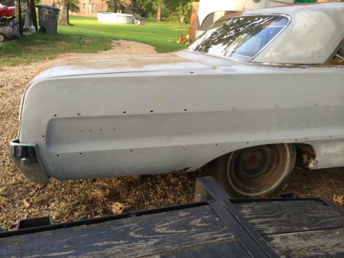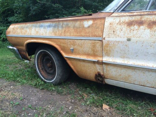 1964 CHEVY IMPALA ALL ORIGINAL NUMBERS MATCHING CAR NOT RUNNING WILL NEED COMPLETE RESTORATION THE BODY IS PRETTY SOLID NEEDS SOME FRONT FLOOR PAN WORK AND WORK IN THE TRUNK AND NORMAL SPOTS THR FRAME AND ROCKERS ARE SOLID THIS IS GREAT START ON A NICE ORIGINAL CAR WITH A/C PLEASE KNOW WHAT YOU ARE LOOKING AT FEEL FREE TO ASK MANY ANY QUESTIONS OR MAKE REASONABLE OFFER BUYER IS RESPONSABILE FOR SHIPPING OR PICKUP OF CAR.573-915-3386 FOR ANY QUESTIONS