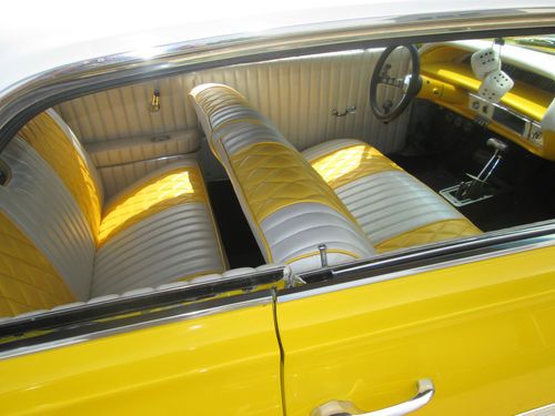 I HAVE A 1964 CHECY IMPALA NON SS RUNNING 350 MOTOR CHROME OUT 750 EDELBROCK ,2 SPEED POWER GLIDE TRANNY, STRAIGHT PIPE, CANARY YELLOW PAINT GLOSSY WITH WHITE TOP STOCK FRAME ALL NEW TRIMS PURCHASE FROM LAST MINUTE CUSTOMS, WHITE DIAMOND INTERIOR WITH YELLOW INSERT BENTLY STYLE, NO RUST SITTING ON 13 WITH NEW WHITE WALL TIRES. WILL NOT SHIP ANYWHERE, WILL NOT MEET ANYONE ANYWHERE BESIDES MY SHOP. CASH IS KING OR A REASONABLE SAME VALUE CAR WITH A BLUE TITLE