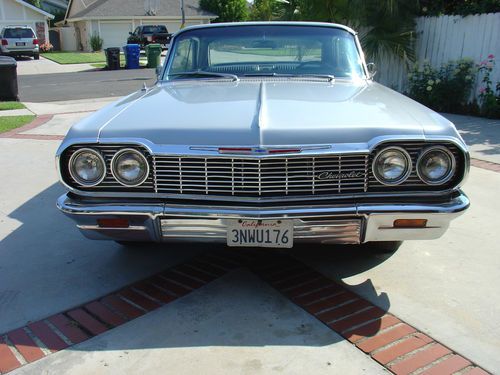 For sale i got an clean original California Car 1964 Chevy Impala SS Super Sport with power windows and tilt steering column that was built at the Los Angeles plant. This car is in great condition, paint is very nice, and body is straight, original 327 engine powerglide transmission that runs great, Stock Rims and caps with skirts. Interior is in very clean shape. Everything on this car works all the interior lights, turn signals, dash guages, headlights, everything, new brakes..Undercarriage is super clean and 100% rust free no rust ANYWHERE on this car. Car is being sold As-Is with no warranty and is the buyers responsibilty to check car prior to bidding. Car is Located in Los Angeles and has a clean title. I have sold a couple cars to overseas buyers and out of state buyers in the past and can offer to deliver the car to any of the shipping companys here in southern california or can give you the numbers to a few shipping companys ive used many times with no issues. Most of my cars end up selling before the auctions even end so i have the right to end the auction early if the car sells locally. IF YOU HAVE ANY QUESTIONS YOU CAN CALL ME ON MY CELL AT 714-401-3854 thanks