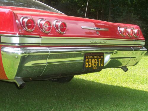 This red w. white interior Impala runs & drives perfect. Front end totally rebuilt including new coil springs. New power disc brakes, including booster,prop valve, master cylinder, rotors; stops quick & straight. New power steering added. Engine is a crate 350, not hot rodded engine, approx. 6000 miles. Edlebrock intake. Turbo 350 transmission. Alum. radiator w. electric fan. New 15x7 rally wheels w. about 1800 miles on tires. New R 134 A/C from Southern Air blows cold. New tinted windshield. Floor pans painted w. POR 15 rust preventer and fully insulated. New fuel line carb to tank. New dual exhaust system. Some rust in trunk floor, small holes, could be patched. No floor rust. Paint is not high end, but shiny & looks good w. no flaking or peeling. Orig. AM radio does not work, had no time to troubleshoot. New red seat belts frt. & rear w. shoulder straps in front. My name on title & I'm not a dealer.Located 15 mi out of Charlotte, NC. Selling due to health reasons. USA sales only. Low reserve & Happy Bidding. E-mail or call 704 641-3672, or 704 882-2867 with questions. Payment w. cash, bank money order, or postal money order. Can accept the deposit with Pay Pal. THANK YOU VETERANS.