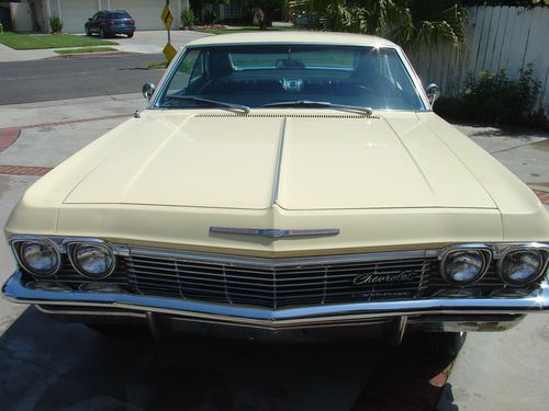 For sale i got a very clean and original California car 1965 Chevy Impala. This car is in great shape, its only had one repaint its whole life in its original color, paint is very nice and body is very straight, original 327 engine powerglide transmission engine was completely rebuilt about 5k miles ago runs excellent with all new exhasut pipes all the way back. Brand new tires. Car drives very nicely, engine fires right up idles BEAUTIFULLY with absolutely no hesitation and super quiet and the powerglide transmission shifts perfectly. Interior is in excellent condition and all original with the original dash pad in excellent shape with no cracks. Everything on this car works all the interior lights, turn signals, dash guages, headlights, everything, new brakes. You just dont find them like this anymore undercarriage is super clean and 100% rust free no rust ANYWHERE. Car is being sold As-Is with no warranty and is the buyers responsibilty to check car prior to bidding. Car is Located in Los Angeles and has a clean title. I have sold a couple cars to overseas buyers and out of state buyers in the past and can offer to deliver the car to any of the shipping companys here in southern california. Most of my cars end up selling before the auctions even end so i have the right to end the auction early if the car sells locally. IF YOU HAVE ANY QUESTIONS YOU CAN CALL ME ON MY CELL AT 714-401-3854 thanks