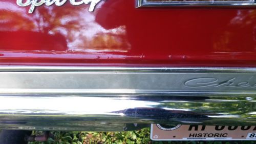 This is A Sweet Ride, that has a 327 Engine with a 600 Holly Intake and A Two speed Power Glide Transmission. It Has all New aluminum Alloy American Racing Rims and brad New Cooper Tires(245/50 R16). Runs and drives Like A Dream. Set Up For Flame Thrower exhaust. The Odometer Reads 53,400 on the Car. The Title Reads Exempt for Mileage Due to Vehicle Not Being plated for many Years. This is a matching Number Car. The car also has A Siren that sounds like a Fire or Police Siren. There is a missing Trim piece on the outer Rear passenger side of Vehicle. There are a few Tiny spots as shown in the Pictures. The Car has Fairly New Paint, and The Seats are Recovered and are Very Comfortable.