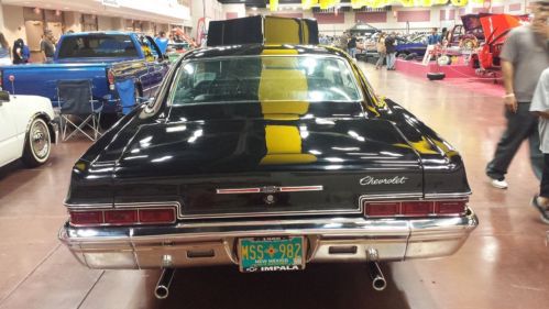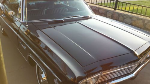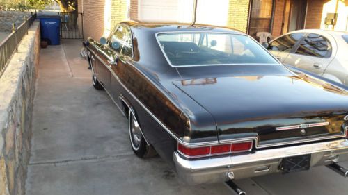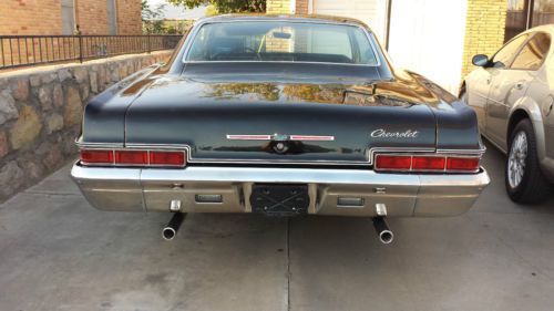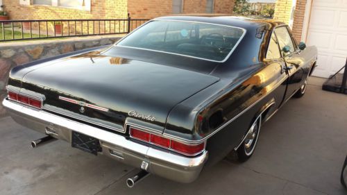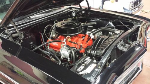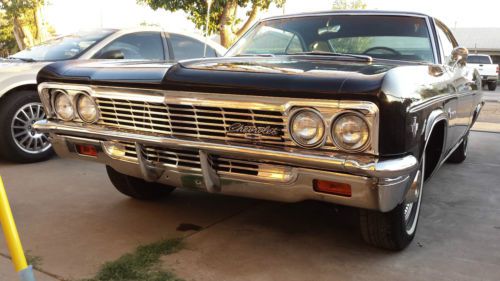 Up for sale is this beautiful 1966 chevy impala fully restored. Black in Black. Rebuild 327 5.3 ltr engine with rebuild transmission. Engine has new distributor cap with cables, new alternator, water pump, fuel pump, tank floater and hoses, new battery with cables and new radiator metal with copper not aluminum. There is no rust on this car. Body was grinded to metal and painted black. Good paint job. Frame, firewall all sandblasted to steel and painted black. All glass is in good condition. The interior has been upholstered black. Gage bazel restored to its original style chromed not painted. all gages work. New clock and original stereo. New brakes (drum brakes). All suspension bushings are new and it has new shocks back and front. This model came with no a/c unit and no tilt steering column. Brand New a/c with heater unit has been installed and a tilt steering column was also installed. New dashboard also installed. All engine harnesses are new. All lights interior and exterior work. This car has all the trim and emblems in requires. Front and back bumper have been chromed. Grille and all other trim including window trim have been polished. Wipers work 2 speed. Rims were also sandblasted and painted black both sides with polished hubcaps and with brand new whitewall tires. This car was kept original as possible there is nothing custom on this car. This is a very beautiful car and it runs great. If you are interested you can call or text me at (915) 526-4585. This car is located in El Paso, Tx. Thank you for your time and for looking. If you are not interested please do not reply with negative feedback. Thank you and have a great day!!