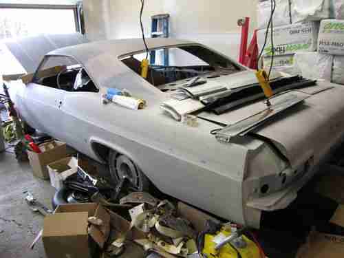 Included also are origional trim, All Glass, it had a vinyl top and the trim holes are filled but trim is included, interior components, most interior is gone as it was to be custom built by Upholstery Unlimitied in Iowa. Core Support is origional and rust free, wheel wells are aftermarket and brand new, Origional rust free hood hinges. I'm pretty sure every nut and bolt is seperated and in jars labeld for reassembly.