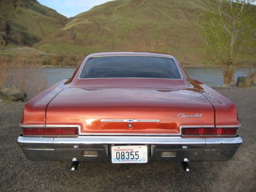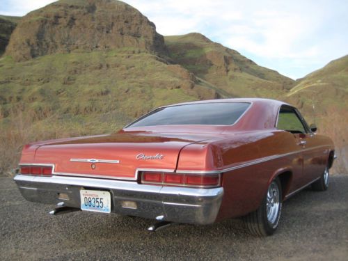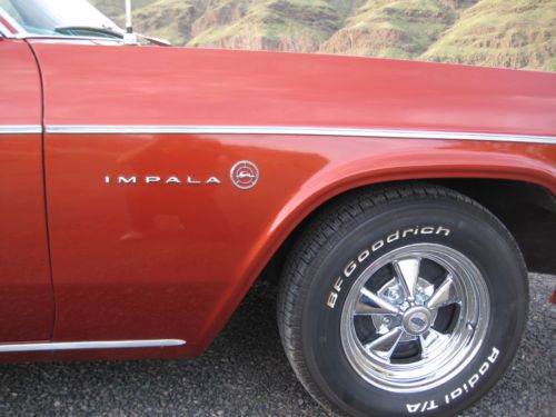 This Little Impala Runs, and drives like new. The speedo shows 53,283 miles. The original 283 engine stars easy, runs smooth, and sounds good with it's new 2" ex-host, with Thrush mufflers. The power glide transmission also works as it should, and shifts nice. This car is a pleasure to drive with it power steering, and smooth ride. The car has no squeaks or radials. New base coat, clear coat, paint has been added, in a custom Bronze, over a very nice original body, that had only a few small dings. No damage ever. (This color fits the car well.) Also new door & trunk rubbers were installed, and also an new trunk mat. The original dash also has new paint in black, and a new disk player. Everything on the car works as it should, the only thing that is no working is the clock. New Cragar wheels with new BF Goodrich T/A radials, give the car that nostalgic look. (This car shows very well.) The interior has its original seats with new door panels, headliner, and carpeting. The bumpers do have a couple of dings, and could use a replace to be perfect. (Look at pictures closely) The doors have no sag, and open & shut nicely. I'm listing this Impala for a friend that would like to see it go to a good home. He just never drives it. The car has no issues, and will make someone a great driver. Buyer is responsible for shipping and all shipping costs. We will help with loading on our end, and in anyway we can. For questions please call Bill (208)750-0000 |