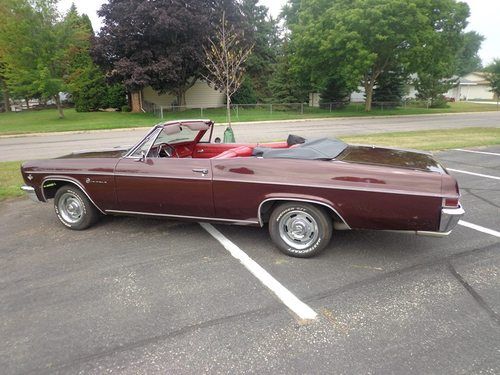 1966 Impala Convertible,383 stroker with around 400 Hp,350 turbo with shift kit, new brakes, new interior, the motor and trasmission where both rebuilt 3"exhaust, Solid car. Set reserve for 14,500.Call Robert with any questions at 651-829-4897 Thank you for looking!