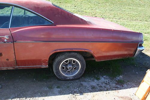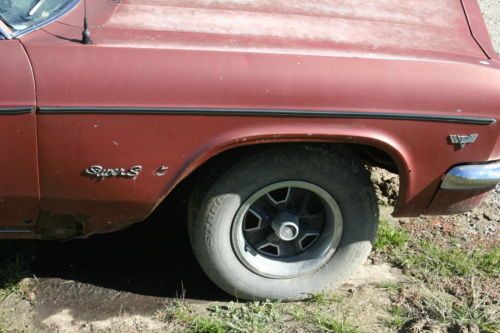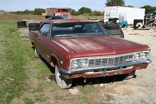Here is a TRUE 138 car 1966 SS Impala super sport. Found in an old garage. It has a 400 with a 4 speed tranny. It has factory bucket seats. The car needs the back glass.This car runs and drives. This car needs restored. It has rust and needs interior and paint and tires. If you are interested call 913-796-6354 or email me. Thanks |